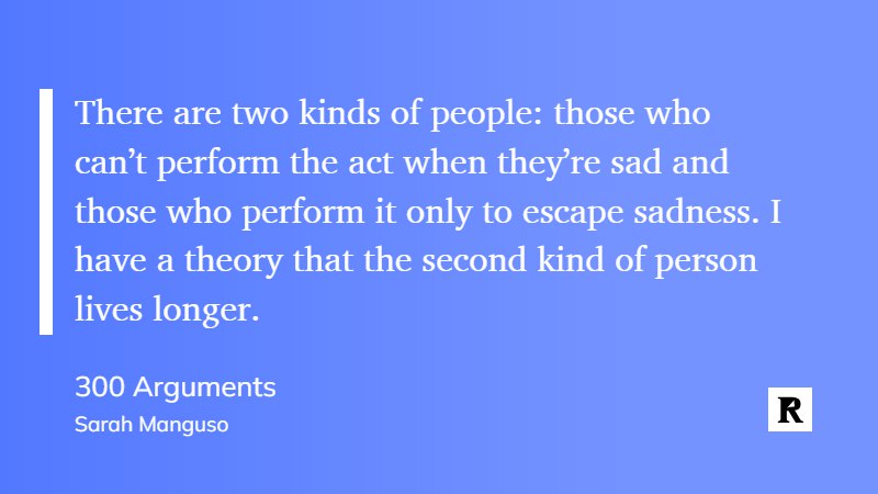 "世上有两种人:一种是悲伤时无法行动的人,另一种是只为逃避悲伤而行动的人。我有个理论,认为第二种人活得更长。"